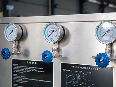 FJZ-4A型飛機加油接頭綜合試驗臺是為滿足偏遠地區(qū)或者不便于提供電源的現(xiàn)場測試各型飛機壓力加油接頭性能及飛機加油膠管耐壓試驗要求而專門進行設計的一款試驗設備。它能準確輸出和檢測試驗過程中的各種壓力,測試精度滿足技術要求。該設備具有性能可靠,操作簡便,移動性強,不帶電提供壓力,可擴展測試其它管路及閥門等特點。試驗臺整體采用不銹鋼材質,試驗臺管路均為不銹鋼管路,滿足各種惡劣環(huán)境下的工作要求,是一臺具有一定通用性的航煤綜合測試設備。